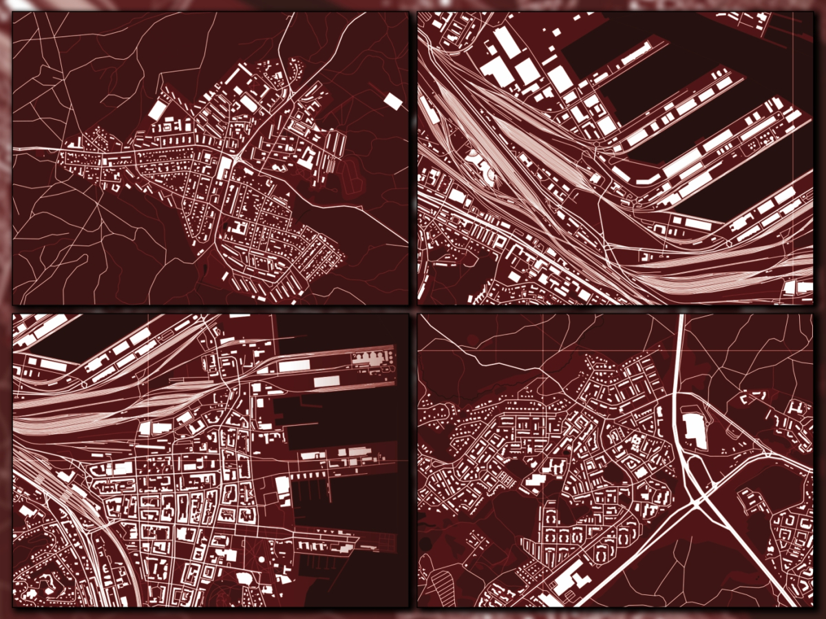 Na pierwszym planie wyróżnia się sieć komunikacyjna, uwzględniająca drogi, węzły komunikacyjne oraz tory kolejowe. Istotnym elementem prezentowanej treści jest szczegółowa zabudowa miejska, uwzględniająca zarówno budynki jedno-, jak i wielorodzinne, ale także hotele, obiekty turystyczne, biurowe, handlowo-usługowe, transportowe, przemysłowe, magazynowe, hydrotechniczne, naukowo-badawcze, oświatowe, sportowe czy też nawet pojedyncze gospodarstwa rolne.